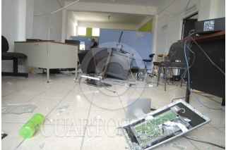 COMITÁN, CHIAPAS, 01JUNIO2016.- Luego de la detención de Santiago Calvo López, líder de la Organización Proletaria Emiliano Zapata (OPIEZ), acusado de orquestar la agresión a maestros en Comitán de Domínguez, sus correligionarios causaron destrozos a la Fiscalía de Distrito Fronterizo Sierra. FOTO: TOÑO AGUILAR /CUARTOSCURO.COM