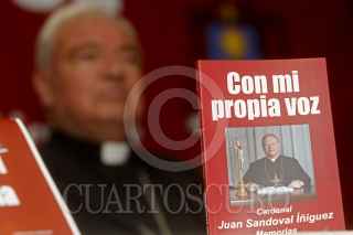 GUADALAJARA, JALISCO, 01JUNIO2016.- El Arzobispo emérito, Juan Sandoval Íñiguez, presento su mas reciente obra literaria llamada “Con mi Propia Voz”, en evento que tuvo lugar en el Club de Industriales de Jalisco. FOTO : FERNANDO CARRANZA GARCIA / CUARTOSCURO