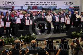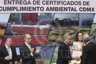 CIUDAD DE MÉXICO, 02JUNIO2016.- Miguel Ángel Mancera, jefe de gobierno capitalino, acompañado de Tanya Müller, secretaria de Medio Ambiente, entregó Certificados de Cumplimiento Ambiental a representantes de empresas privadas que cumplieron con los estándares de cuidado al medio ambiente. FOTO: MARÍA JOSÉ MARTÍNEZ /CUARTOSCURO.COM