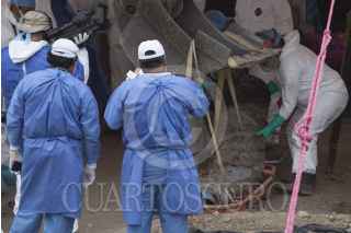 TETELCINGO, MORALOES, 02JUNIO2016.- La Fiscalía General de Morelos, este viernes podrían concluir la exhumación de cadáveres en las fosas de Tetelcingo, luego de que se recuperó el cuerpo número 100 alrededor de las 11:00 horas de este jueves. Este es el onceavo día de labores en la diligencia en Tetelcingo ordenada por un juez y la cual comenzó a ejecutarse el pasado 23 de mayo. Este jueves las labores comenzaron a las 08:10 horas y se habían recuperado 6 cadáveres de la fosa “B” en el panteón clandestino de Tetelcingo. FOTO: ESPECIAL /CUARTOSCURO.COM