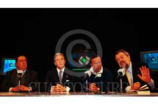 Javier Quijano, abogado del Canal 40, Javier Moreno, dueño de CNI Canal 40, Ciro Gómez Leyva, reportero, Fernando Gómez, abogado del Canal 40, dieron a conocer su postura ante la determinación del gobierno federal en el conflicto entre TV Azteca y Canal 40, acusaron al Gobierno federal de ponerse de parte de TV Azteca. FOTO: Susana Navarrete/CUARTOSCURO.COM
