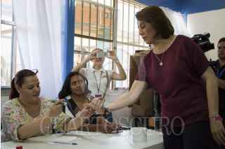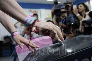 AGUASCALIENTES, AGUASCALIENTES, 05JUNIO2016.- Lorena Martínez, candidata de la alianza PRI, PT, PVEM y PANAL, emitió su voto pasadas las 9 de la mañana en la capital. FOTO: YOLIZTLI RAMOS /CUARTOSCURO