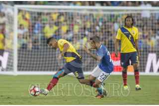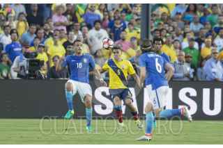 PASADENA, CALIFORNIA, 05JUNIO2016.- El día de ayer Fidel Martínez disputa la bola con Lucas Lima durante el partido entre la selección de Brasil y su similar de Ecuador, realizado en el estadio Rose Bowl de Pasadena, California, corres pendiente a la fase de grupos de la Copa América Centenario 2016.Marcador Final: Brasil 0, Ecuador. FOTO: CHRISTIAN SERNA /CUARTOSCURO.COM