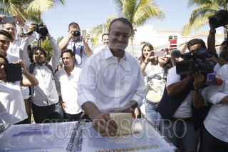 MAZATLÁN, SINALOA, 05JUNIO2016.- Quirino Ordaz, candidato a gobernador por la alianza PRI-PVEM, emitió su voto. FOTO: CUARTOCURO.COM