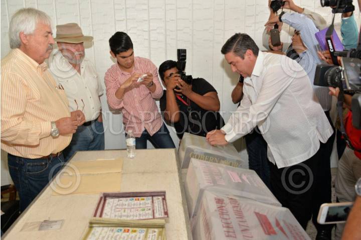 MATAMOROS, TAMAULIPAS, 05JUNIO2016.- Baltazar Hinojosa Ochoa, candidato del PRI al gobierno del estado, realizó su voto en la Ciudad de Matamoros acompañado de su esposa y de candidatos a presidentes municipales de su partido. FOTO: SAÚL LÓPEZ/CUARTOSCURO.COM