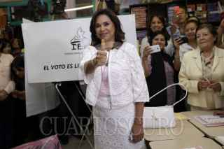 PUEBLA, PUEBLA, 05JUNIO2016.- Blanca Alcalá, candidata del PRI a la gobernatura de Puebla, emitió su voto al mediodía durante la jornada electoral en Puebla, la cual se ha llevado a cabo sin incidentes. FOTO: HILDA RÍOS /CUARTOSCURO.COM