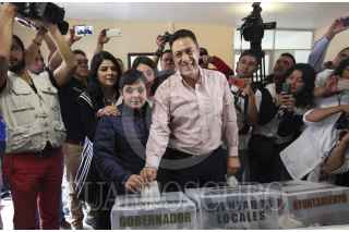 PACHUCA, HIDALGO, 05JUNIO2016.- Omar Fayad, candidato a la gubernatura de Hidalgo, acudió a la casilla respectiva para emitir su voto en esta Jornada Electoral 2016. FOTO: BETO ALLEC /CUARTOSCURO.COM