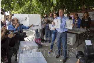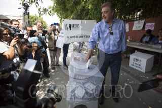 TIJUANA, BAJA CALIFORNIA, 05JUNIO2016.- El gobernador del estado, Francisco Vega de Lamadrid emitió su voto en esta jornada electoral donde comentó que hasta el momento no se han registrado hechos importantes que puedan afectar la elección. FOTO: CHRISTIAN SERNA /CUARTOSCURO.COM
