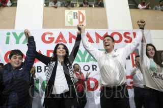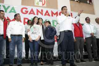PACHUCA, HIDALGO, 05JUNIO2016.- El candidato del PRI a la gubernatura Omar Fayad festejó su triunfo junto con su esposa Victoria Ruffo. FOTO: LUISA AMADOR /CUARTOSCURO.COM