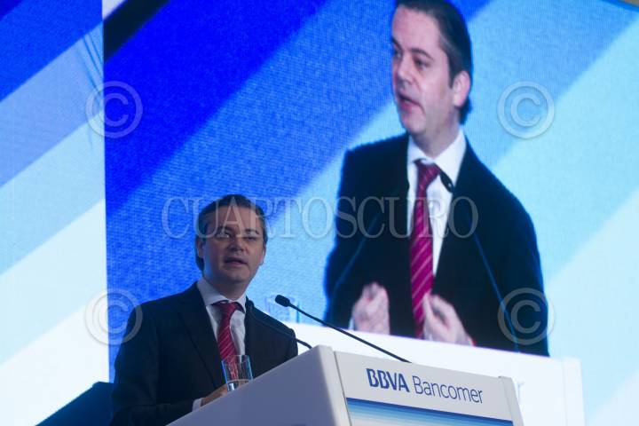 CIUDAD DE MÉXICO, 06JUNIO2016.- Agustín Carstens, gobernador del Banco de México, durante su participación en la Reunión Anual de Consejeros de BBVA Bancomer 2016. FOTO: CUARTOSCURO.COM