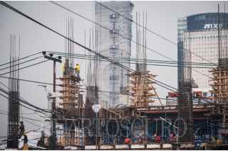 CIUDAD DE MÉXICO, 07JUNIO2016.- Un grupo de hombres labora en la construcción de un edificio en la colonia Anzures, sobre avenida Mariano Escobedo. FOTO: DIEGO SIMÓN SÁNCHEZ /CUARTOSCURO.COM