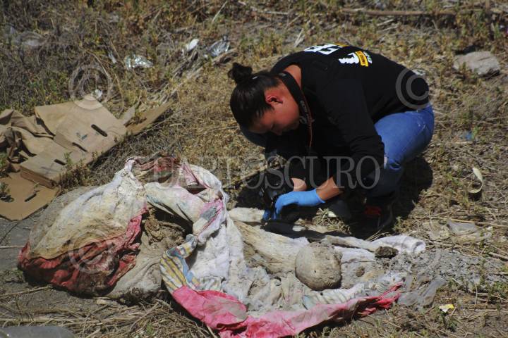 CIUDAD JUÁREZ, CHIHUAHUA 08JUNIO2016.- En el cruce de las calles Bocanegra y Durango, cuando vecinos del sector reportaron el hallazgo de osamenta en dique de la colonia Horizontes del Sur. De acuerdo con primeras versiones, vecinos encontraron la osamenta a consecuencia de los fuertes olores que había en la zona. Al lugar arribaron elementos de la Fiscalía General del Estado y Policía Municipal para acordonar el perímetro y realizar las primeras investigaciones. FOTO: NACHO RUIZ /CUARTOSCURO.COM