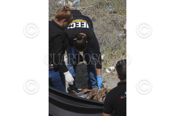 CIUDAD JUÁREZ, CHIHUAHUA 08JUNIO2016.- En el cruce de las calles Bocanegra y Durango, cuando vecinos del sector reportaron el hallazgo de osamenta en dique de la colonia Horizontes del Sur. De acuerdo con primeras versiones, vecinos encontraron la osamenta a consecuencia de los fuertes olores que había en la zona. Al lugar arribaron elementos de la Fiscalía General del Estado y Policía Municipal para acordonar el perímetro y realizar las primeras investigaciones. FOTO: NACHO RUIZ /CUARTOSCURO.COM
