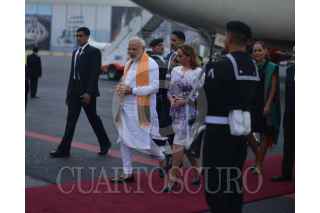 CIUDAD DE MÉXICO, 08JUNIO2016.- Arribo al hangar presidencial de Narendra Modi, Primer Ministro de India, en visita de trabajo. La recepción la realizó Claudia Ruiz Massieu, Secretaria de Relaciones Exteriores. FOTO: ADOLFO VLADIMIR /CUARTOSCURO.COM