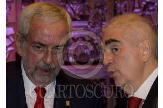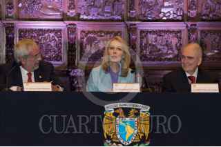CIUDAD DE MÉXICO, 09JUNIO2016.- Enrique Graue, rector de la Universidad Nacional Autónoma de México y Rafael Tovar y de Teresa, secretario de Cultura, estuvieron presentes durante la conferencia de presentación de la convocatoria del premio internacional “Carlos Fuentes a la Creación Literaria en el Idioma Español 2016”. FOTO: GALO CAÑAS /CUARTOSCURO.COM
