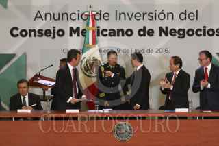CIUDAD DE MÉXICO, 09JUNIO2016.- Germán Larrea Mota Velasco, director ejecutivo de Grupo México, conversa con Luis Videgaray, secretario de Hacienda y Crédito Público (SHCP), durante la sesión del Consejo Mexicano de Negocios. FOTO: ADOLFO VLADIMIR /CUARTOSCURO.COM