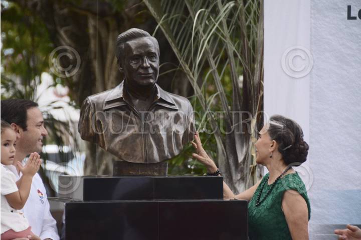 CANCÚN, QUINTANA ROO, 09JUNIO2016.- Florinda Meza encabezó la develación de un busto de quien fuera su esposo Roberto Gómez Bolaños (1929-2014), el humorista vivió y murió en esta destino turístico, después de que los médicos le recomendarán vivir a nivel de mar por sus problemas de salud. El busto se encuentra en la explanada del Palacio Municipal. FOTO: ELIZABETH RUIZ /CUARTOSCURO.COM