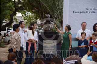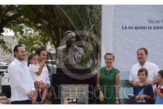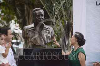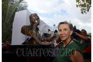 CANCÚN, QUINTANA ROO, 09JUNIO2016.- Florinda Meza encabezó la develación de un busto de quien fuera su esposo Roberto Gómez Bolaños (1929-2014), el humorista vivió y murió en esta destino turístico, después de que los médicos le recomendarán vivir a nivel de mar por sus problemas de salud. El busto se encuentra en la explanada del Palacio Municipal. FOTO: ELIZABETH RUIZ /CUARTOSCURO.COM