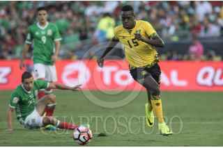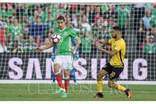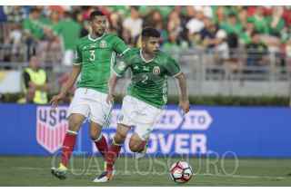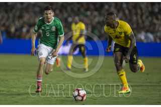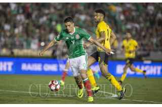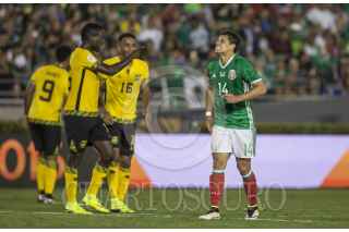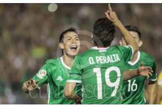 PASADENA CALIFORNIA, ESTADOS UNIDOS, 09JUNIO2016.- Hirving Lozano festeja con Oribe Peralta el segundo gol anotadora el equipo tricolor durante el encuentro entre la Selección de México y su similar de Jamaica, realizado en el estadio Rose Bowl, correspondiente a la segunda fecha del grupo C de la Copa América Centenario. Marcador final. México 2, Jamaica 0. FOTO: CHRISTIAN SERNA /CUARTOSCURO.COM