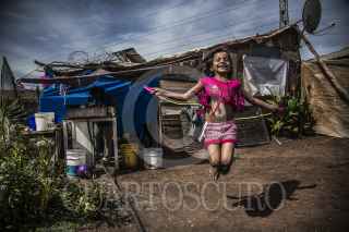 CULIACÁN, SINALOA, 11JUNIO2016.- A pesar de no tener los servicios básicos como agua potable, vivienda, educación, hogar digno y vivir en condiciones de pobreza, Maricruz de siete años de edad, se divierte saltando la cuerda en el patio de su hogar. Una vivienda hecha de madera y laminas es donde Dolores Nuñez mantiene a su familia. Se estima que alrededor de 53.3 millones de personas viven en esta condición, según los datos de el Consejo Nacional de Evaluación de la Política de Desarrollo Social (Coneval). FOTO: RASHIDE FRIAS /CUARTOSCURO.COM