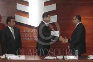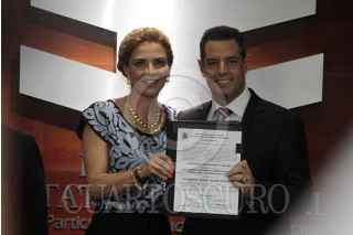 OAXACA, OAXACA., 11JUNIO2016.- La noche de este domingo Alejandro Murat Hinojosa recibió dls constancia de mayoría que lo acredita como gobernador electo, esto de manos del consejero presidente del Instituto Estatal Electoral y de Participación Ciudadana de Oaxaca (IEEPCO), Murat Hinojosa estuvo acompañado de su esposa Ivette Morán. FOTO: CAROLINA JIMÉNEZ /CUARTOSCURO.COM