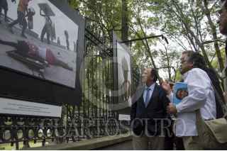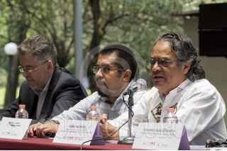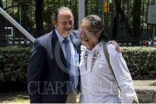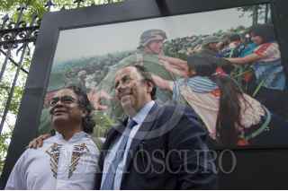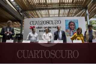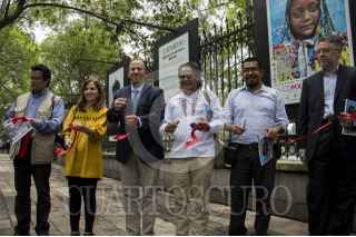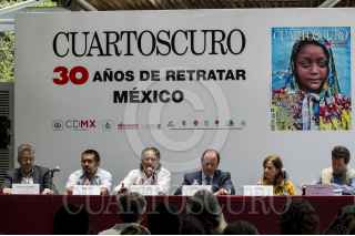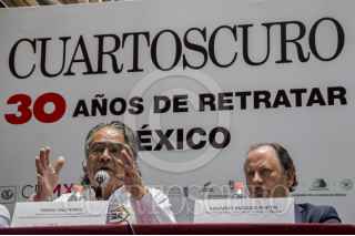 CIUDAD DE MÉXICO, 13JUNIO2016.- Eduardo Vázquez Martín, secretario de Cultura de la Ciudad de México y el fotoperiodista Pedro Valtierra, director de la Agencia Cuartoscuro, aprecian las fotografías de la exposición “30 años de retratar México” por el 30 aniversario de dicha agencia. FOTO: GALO CAÑAS /CUARTOSCURO.COM
