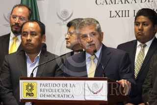 CIUDAD DE MÉXICO, 13JUNIO2016.- El Partido de la Revolución Democrática (PRD) decidió impugnar los resultados de las elecciones del pasado 5 de junio en Oaxaca, en las que tuvo como candidato a José Antonio Estefan Garfias, luego de considerar que existen elementos jurídicos suficientes para iniciar el proceso. Diputados del grupo parlamentario del Sol Azteca acompañaron a Estefan Garfias para realizar el anuncio. FOTO: CUARTOSCURO.COM