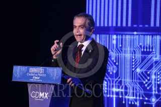 CIUDAD DE MÉXICO, 13JUNIO2016.- Miguel Ángel Mancera, jefe de gobierno de la Ciudad de México acompañado de Arturo Elias Ayub director de la Fundación Telmex-Telcel, Miguel Torruco, Secretario de Turismo de la Ciudad de México y Horacio de la Vega, titular de INDEPORTE, presentaron en el museo Soumaya el maratón de la Ciudad de México 2016. FOTO: SAÚL LÓPEZ /CUARTOSCURO.COM