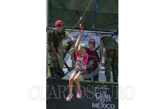 PIEDRAS NEGRAS, COAHUILA, 14JUNIO2016.- Una niña participa en las actividades de rapel y tirolesa durante la exposición militar “Fuerzas Armadas… Pasión por Servir a México”. FOTO: GALO CAÑAS /CUARTOSCURO.COM