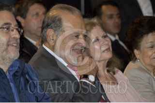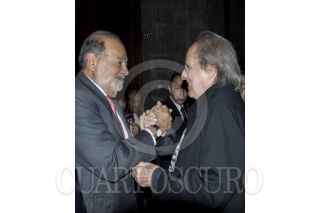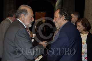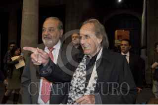 CIUDAD DE MÉXICO, 15JUNIO2016.- Carlos Slim, presidente honorario de Grupo Carso y presidente de Fundación Carlos Slim despide al arquitecto Teodoro González de León tras su homenaje celebrado en las inmediaciones del Museo de la Ciudad de México. FOTO: GALO CAÑAS /CUARTOSCURO.COM