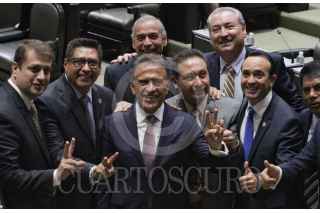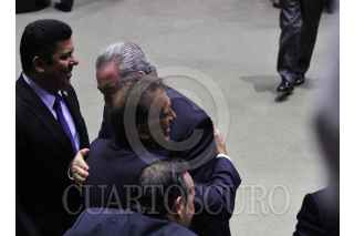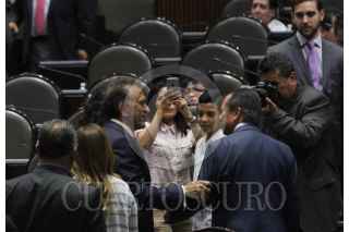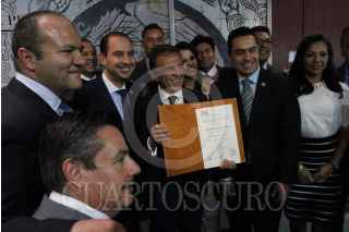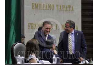 CIUDAD DE MÉXICO, 16JUNIO2016.- El candidato electo a gobernador de Veracruz, Miguel Ángel Yunes asistió al pleno en donde se detuvo saludar a la bancada bicolor; previamente fue convocado a conferencia en donde Marko Cortés, presidente de la bancada del PAN, a quien le entregó una constancia. FOTO: MARÍA JOSÉ MARTÍNEZ /CUARTOSCURO.COM