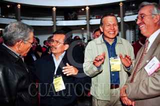 El dirigente de la Confederación Nacional Campesina, Heladio Ramírez, platica conj un campesino, mientras el gobernador de Hidalgo, Manuél Angel Nuñez Soto, hace lo mismo. Previo a la ceremonia de apertura del diálogo por una política de Estado para el campo. Esta mañana en el palacio Negro de Lecumberri, ahora edificio del Archivo General de la Nación. FOTO: Juan Pablo Zamora/CUARTOSCURO.COM