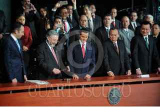 CIUDAD DE MÉXICO, 18JUNIOO2016.- Enrique Peña Nieto, presidente de México, durante la ceremonia de implementación de la reforma de justicia penal en la explanada del altar a la patria del bosque de Chapultepec. FOTO: DIEGO SIMÓN SÁNCHEZ /CUARTOSCURO.COM