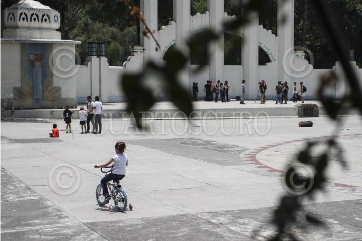CIUDAD DE MÉXICO,18JUNIO, 2016.- Un cielo azul con algunas nubes lucen de fondo para el palacio de Bellas Artes, la estatua de un pegaso y la torre latinoamericana. FOTO: DIEGO SIMÓN SÁNCHEZ /CUARTOSCURO.COM