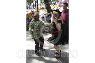 CIUDAD DE MÉXICO, 18JUNIO2016.- A pesar de que sigue el plantón de los maestros de la CNTE en la plaza de la ciudadela, algunas parejas no dejan de asistir a bailar diversos géneros musicales, como es costumbre. FOTO: ANTONIO CRUZ /CUARTOSCURO.COM