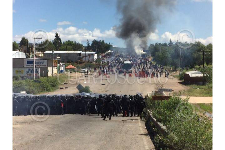 NOCHIXTLÁN, OAXACA, 19JUNIO2016.- Maestros de la CNTE apoyados por ciudadanos se enfrentan con Policías Federales que pretenden retirar un bloqueo carretero, que mantienen los profesores desde hace días en el marco de si lucha en contra de la Reforma Educativa. FOTO: ARTURO PEREZ ALFONSO /CUARTOSCURO.COM