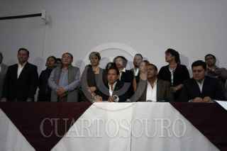 OAXACA, OAXACA., 21JUNIO2016.- Representantes de distintas cámaras empresariales como Canirac, Coparmex, Canacope y Canacintra, entre otras demandaron al gobierno estatal y federal aplicar la ley en contra de quienes han realizado bloqueos y demás acciones que han desestabilizado a la entidad. Benjamín Hernández dirigente estatal de Coparmex demandó también la instalación de una mesa de diálogo entre autoridades y la CNTE. FOTO: ARTURO PÉREZ ALFONSO /CUARTOSCURO.COM