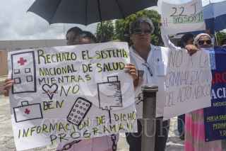 CANCÚN, QUINTANA ROO, 22JUNIO2016.- Médicos se unieron al paro nacional en rechazo al sistema nacional de salud. Los doctores protestaron con pancartas los doctores mientras realizan un plantón afuera del Hospital del Seguro Social. FOTO: ELIZABETH RUIZ /CUARTOSCURO.COM