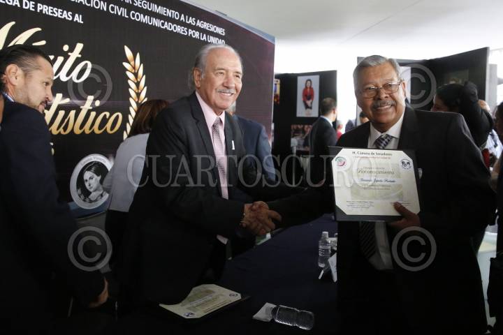 CIUDAD DE MÉXICO, 22JUNIO2016.- El periodista Fernando Zepeda Hurtado recibió un reconocimiento a la Trayectoria Profesional en Comunicación 2016 por el Senado de la República. FOTO: CUARTOSCURO.COM