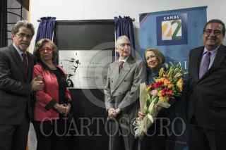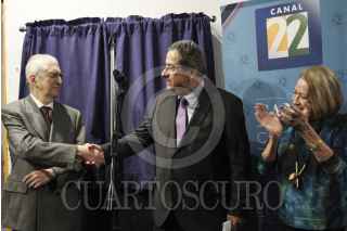 CIUDAD DE MÉXICO, 23JUNIO2016.- Rafael Tovar y de Teresa, secretario de Cultura, presidió la develación de la placa en el estudio principal de Canal 22 en honor a José María Pérez Gay, quien fuera uno de los fundadores del canal cultural que este año celebra su aniversario 23. FOTO: MARÍA JOSÉ MARTÍNEZ /CUARTOSCURO.COM