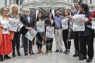 CIUDAD DE MÉXICO, 24JUNIO2016.- Martí Batres, presidente local de Morena, acompañado por diputados de la ALDF, protestaron frente al Palacio de Bellas Artes en contra de las acciones cometidas en días recientes respecto a las movilizaciones magisteriales. Aclaró que este domingo 26 de junio marcharán conjuntamente a los docentes. FOTO: MARÍA JOSÉ MARTÍNEZ /CUARTOSCURO.COM