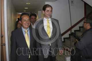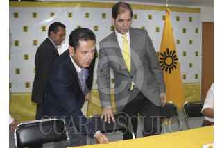 CIUDAD DE MÉXICO, 24JUNIO2016.- Agustín Basave, presidente nacional del PRD acompañado del gobernador electo de Quintana Roo, Carlos Manuel Joaquín ofreció una conferencia de prensa al termino de la reunión que sostuvieron con la dirigencia del sol azteca. FOTO: SAÚL LÓPEZ /CUARTOSCURO.COM
