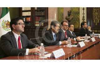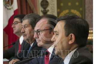 CIUDAD DE MÉXICO, 24JUNIO2016.- Luis Videgaray Caso, Secretario de Hacienda, acompañado de el subgobernador del Banxico, Roberto del Cueto Legaspi, Idelfonso Guajardo, Secretario de Economía, Jaime González Aguadé, titular de la Comisión Nacional Bancaria y de Valoresy Fernando Aportela. Subsecretario de Hacienda y Crédito Público, en conferencia de prensa, anunció el segundo recorte al gasto público tras el referéndum en el que Reino Unido quien decidió separarse de la Unión Europea. FOTO: SHCP /CUARTOSCURO.COM