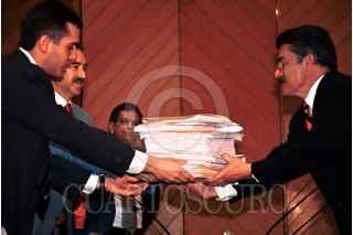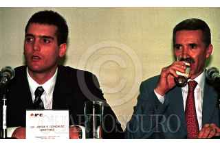 Jorge E. González, presidente del PVEM y Roberto Madrazo, presidente del PRI, ofrecieron conferencia de prensa al finalizar la firma de la "Alianza para Todos". FOTO: Sandra Perdomo/ CUARTOSCURO.COM