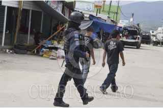 CHILAPA DE ALVAREZ, GUERRERO, 24JUNIO2016.- Tres policías federales adscritos a los operativos en esta ciudad fueron abatidos con fusiles de alto poder, el primer oficial y dos otros con el cargo de tercer policía, los hechos sucedieron cuando se encontraban comiendo en una fonda en la inmediaciones del mercado nuevo de la ciudad, ubicado en la colonia Los Sauces. En el lugar también resultaron heridos una mujer y hombre ambos empleados de la fonda, después de los hechos el lugar fue sitiado por la policía federal y elementos del ejército. FOTO: JOSÉ I. HERNÁNDEZ /CUARTOSCURO.COM