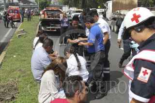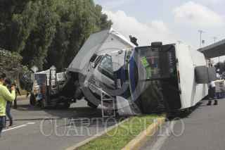 TLALNEPANTLA, ESTADO DE MÉXICO, 27JUNIO2016.- Diez personas resultaron lesionadas al registrarse un choque múltiple provocado por un trailer que circulaba sobre el Periférico Norte con dirección a la Ciudad de México, a la altura de Valle Dorado, un hombre termino prensado dentro de una camioneta, varios pasajeros que viajaban en un camión del transporte público fueron atendidos. FOTO: DIEGO REYES /CUARTOSCURO.COM