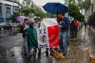 CIUDAD DE MÉXICO, 27JUNIO2016.- Maestros de la CNTE, a su llegada a la Secretaría de Gobernación para participar en el diálogo sobre la Reforma Educativa con autoridades federales. FOTO: ISAAC ESQUIVEL /CUARTOSCURO.COM