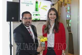 CIUDAD, DE MÉXICO, 29JUNIO2016.- Hugo Martínez, gerente de ingenieria de plantas y sustentabilidad de Heineken-Cuahutemoc Moctezuma acompañado de Blanca Brambilia, gerente de sustentabilidad en conferencia de prensa presentaron el último informe de sustentabilidad y la reducción del uso del agua en la elaboracion de la cerveza. FOTO: SAÚL LÓPEZ /CUARTOSCURO.COM