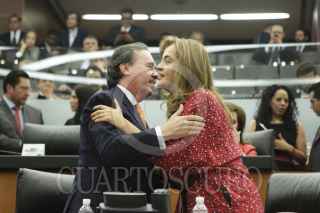 CIUDAD DE MÉXICO, 29JUNIO2016.- La senadora Ana Lilia Herrera Anzaldo (PRI) pidió licencia ante la Comisión Permanente para desempeñarse como secretaria de Educación del Estado de México. En la imagen la despide su coordinador Emilio Gamboa. FOTO: CUARTOSCURO.COM