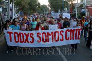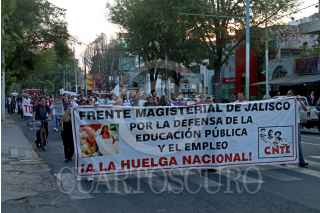GUADALAJARA, JALISCO, 29JUNIO2016.- Un grupo de personas pertenecientes al Frente Magisterial de Jalisco, marcharon de la Glorieta de la Minerva hasta la Plaza de la Liberación en protesta a la Reforma Educativa impuesta por el Presidente de le Republica, Enrique Peña Nieto, misma que ha ocasionado movilización de docentes en diversos estados del país. FOTO : FERNANDO CARRANZA GARCIA / CUARTOSCURO.COM